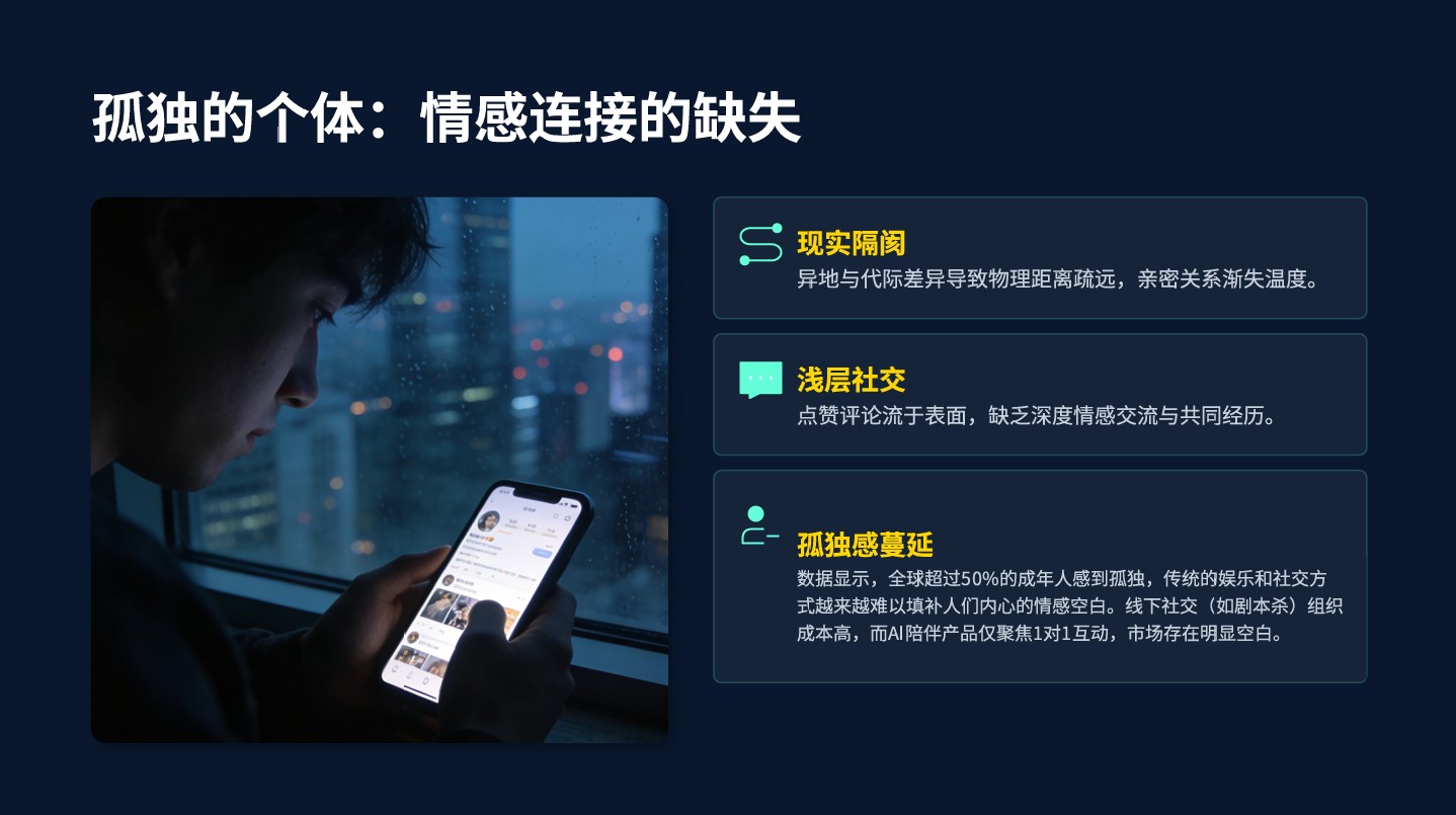 从行业价值来看,梦境编织者跳出了当下 AI 产品 “以虚拟替代真实” 的设计逻辑,转而以 AI 为媒介修复真实的人际关系,而剧本杀、线下社交活动早已验证了用户为 “共同体验” 付费的意愿和能力。项目将这一体验从线下搬到线上、从同城扩展到异地,覆盖代际、情侣、朋友等多元人群,既契合了 AI 技术成熟的行业窗口期,也填补了 “AI + 多人 + 关系增强” 的细分市场空白,而其最终的核心价值,正是用技术为那些想在一起却受限于距离的人,创造一件可以共同参与、共同感受的事,让科技成为真实情感连接的纽带,而非人与人之间的隔离墙。