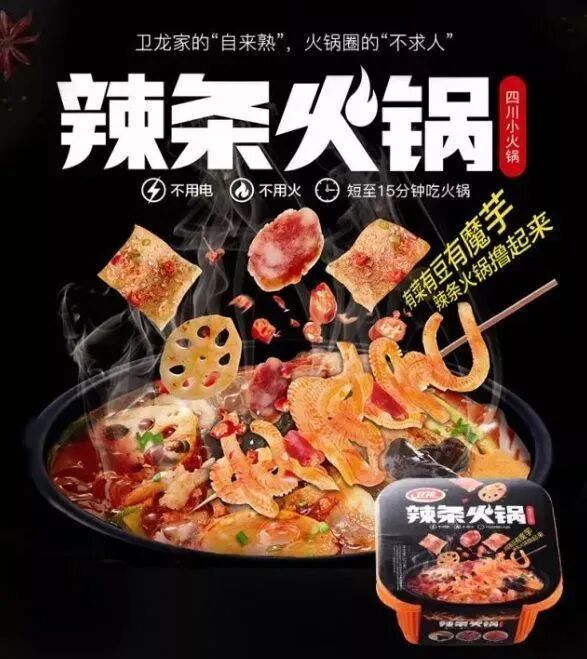 产品技术门槛几近于无,原理是简单的生石灰发热,却创造性地被视为低价快消品的方便食品和当时餐饮界最时髦的火锅联系了起来:在火锅还与多人线下聚餐牢牢绑定,“一个人吃火锅”被视为孤独表现的2018年,自嗨锅打出无需尽力合群,“一个人也能好好吃饭,独自享受火锅”的概念,成功搭上了懒人经济和一人食的东风。