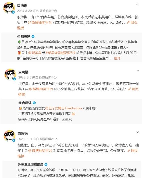 与面膜、床垫、珠宝、鞋子、宠物食品等品牌进行跨界联名未尝不可,但没能打出有记忆点的内容,也没有新的玩法,自嗨锅的联名显得是“为联而联”。消费者也不甚买账,自嗨锅微博抽奖已经有连续多条出现无人中奖的状况。