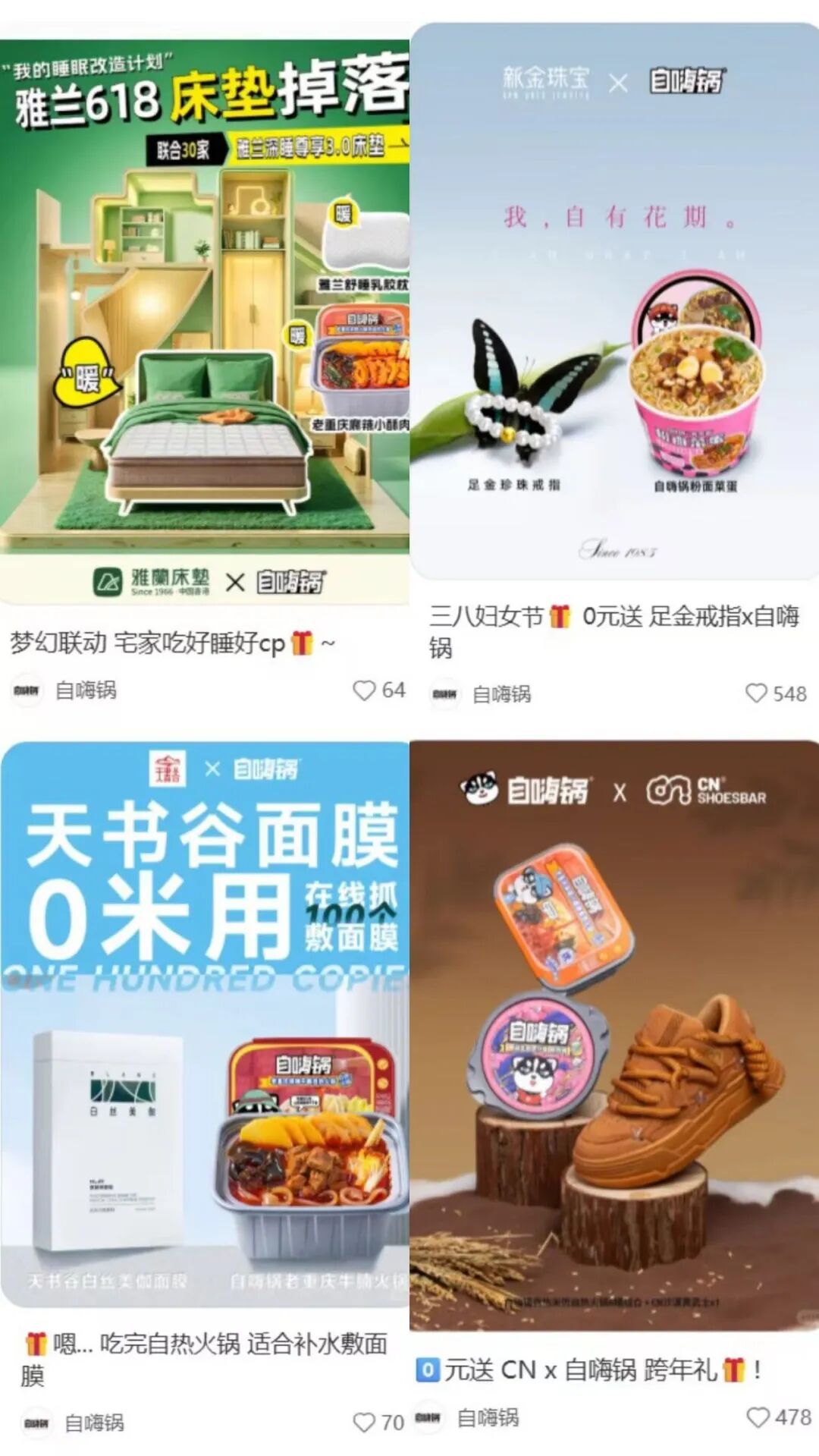 在消费选择更多的情况下,砍掉了高额营销代言的自嗨锅却没有找到新的独家优势。原本,降价加联名的组合拳在近年拯救了不少尝试转型的网红品牌,但自嗨锅的联名活动却显得意义不明:近年来,自嗨锅几乎没有出圈的IP联名案例,只是不断与实业品牌进行抽奖联动。