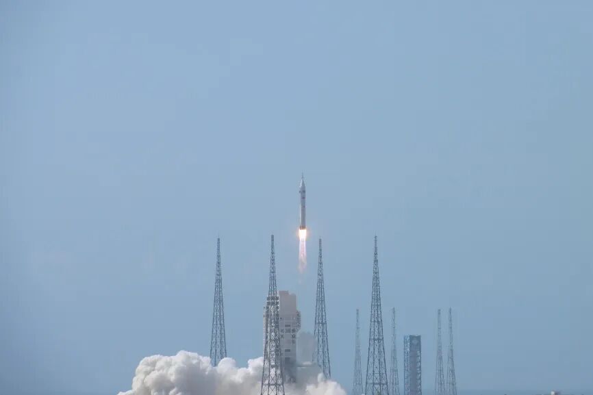 上午11点整,长征十号初样火箭托举着梦舟飞船点火升空。