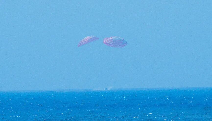 最终,返回舱平稳溅落在预定海域。
