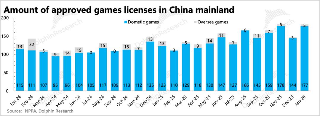 因此我们认为,纵使AI带来供给爆量、竞争加剧,但龙头的优势在AI赋能下甚至还能进一步放大。不管未来如何演绎,短期就去打入极端场景的影响并不理性。况且在内容供给上,中国游戏市场还有一个特殊性——版号审批,近几年来,虽然版号政策松绑,但总量爬坡是在一定控制下缓慢进行。