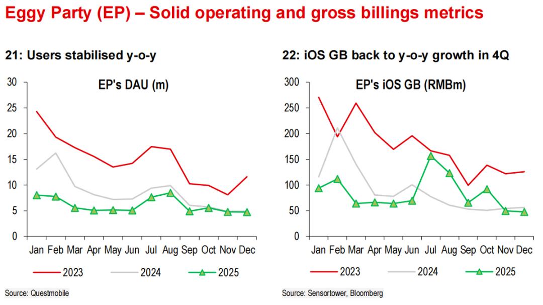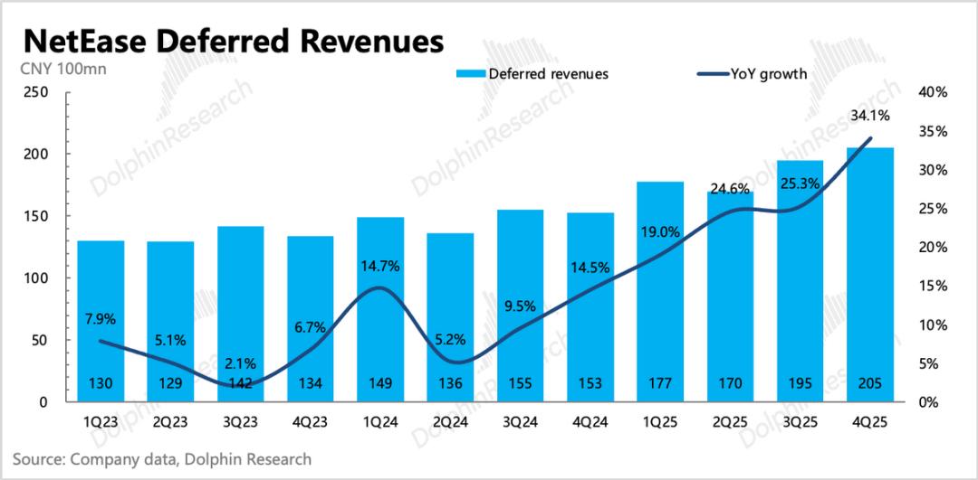 递延收入的表现,对应的是年底《燕云》手游周年庆流水亮眼、《蛋仔》热度反弹,预计对Q1收入会有一些超预期的支撑。