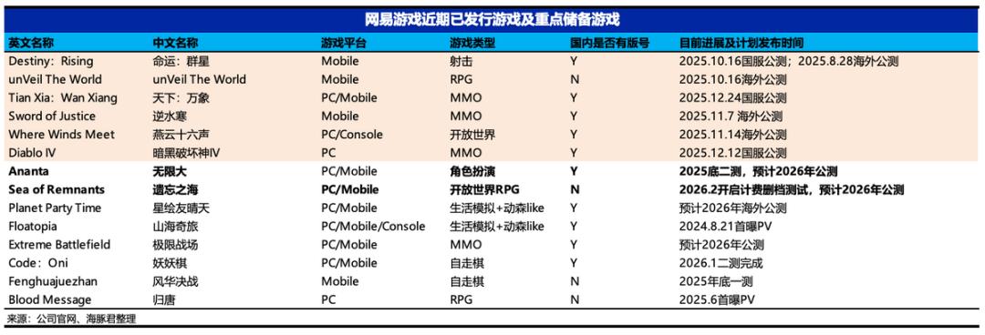 进入2026年,网易开始逐步迈入新产品周期,但具体的上线时间规划还有待管理层给到更多更新。