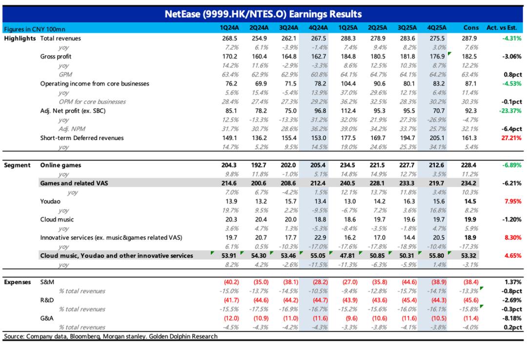 网易于北京时间2月11日港股盘后发布了2025年四季度财报。整体看Q4业绩低于一致预期,还是手游疲软的“锅”。