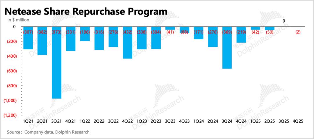 现在来看,后两个因素短期市场有点多虑。但随着情绪消化后,网易这两天反弹仍然偏弱。海豚君认为,市场或许在等待管理层在这次业绩电话会上,对2026年的新产品周期给出更多清晰的指引(排期规划、流水目标等)。