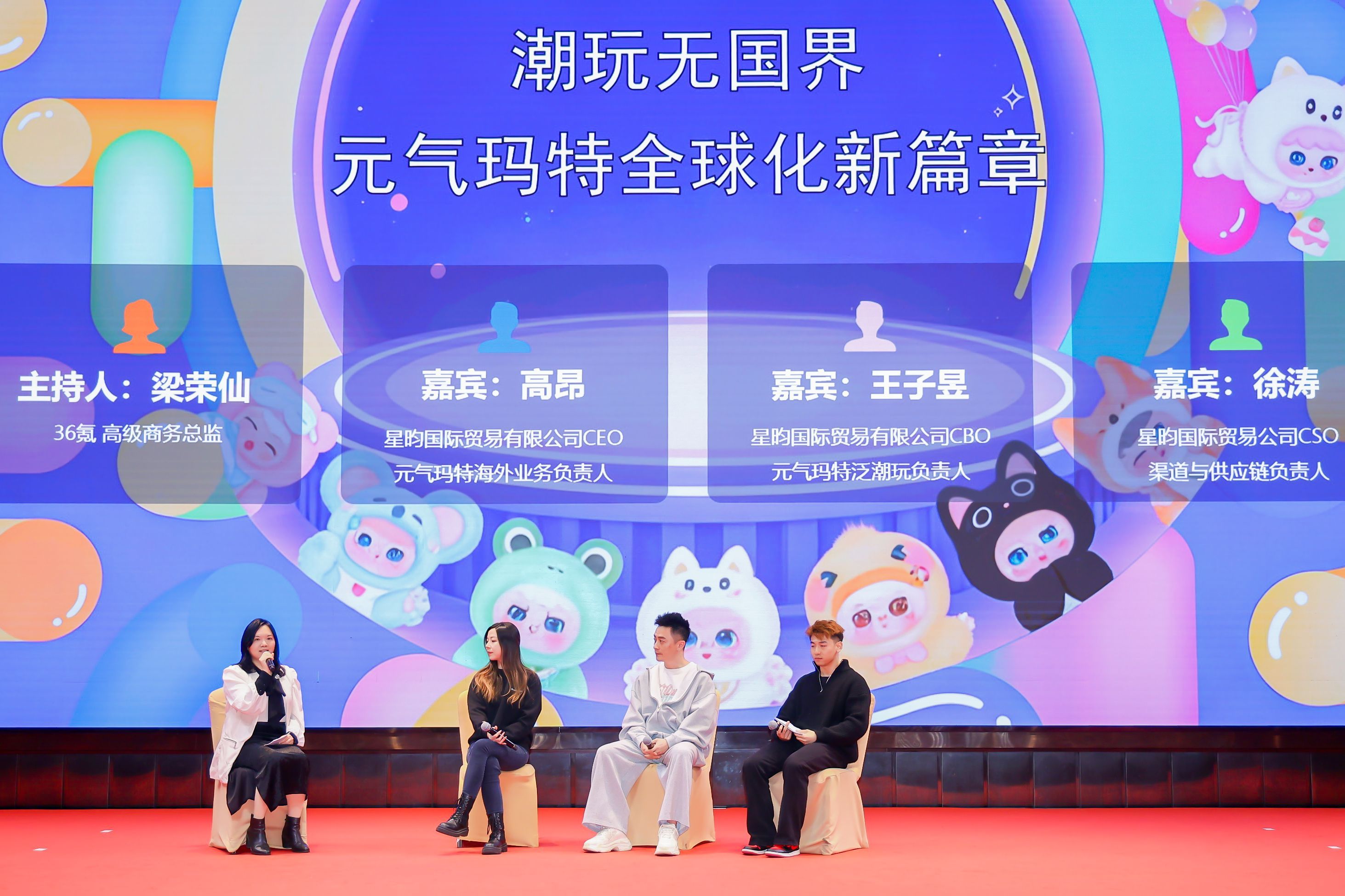 2026年2月9日,潮玩品牌元气玛特(Genki-Mart)举办“潮玩无国界”高层圆桌论坛,展开关于潮玩出海战略与全球化IP打造路径的探讨。论坛由36氪高级商务总监梁荣仙主持,元气玛特参与投资的星昀国际贸易有限公司CEO高昂、CBO王子昱、CSO徐涛共同出席。