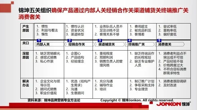 我们企业很容易想到和做到的就是终端管理,但其实营销的管理远不是点状的管理,而是一条从厂商到消费者、从内部到外部的链状管理,需要做好内部人关、经销合作关、渠道铺货关、终端推广关、消费者关等“五关”管理。只有做好每一关的管理,协调好内部人关、打通经销和渠道关、营造好终端推广关,贴近消费者关,才能畅销长销高价销。