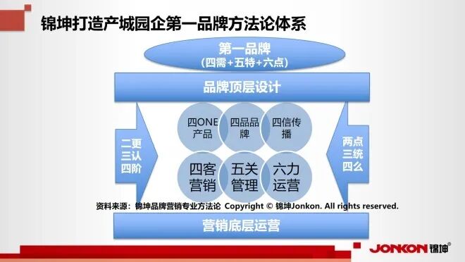 作为400多个专精特新企业、300多个行业第一品牌、200多个上市公司和100多个城市品牌背后的产城园企品牌服务商头牌,我们锦坤提出了“四客”营销+“五关”管理+“六力”运营,就可以在“四one”产品+“四品”品牌+“四信”传播构成的品牌顶层设计的基础上有效高效快效地实现业绩的持续结构增长,让产品畅销长销高价销。