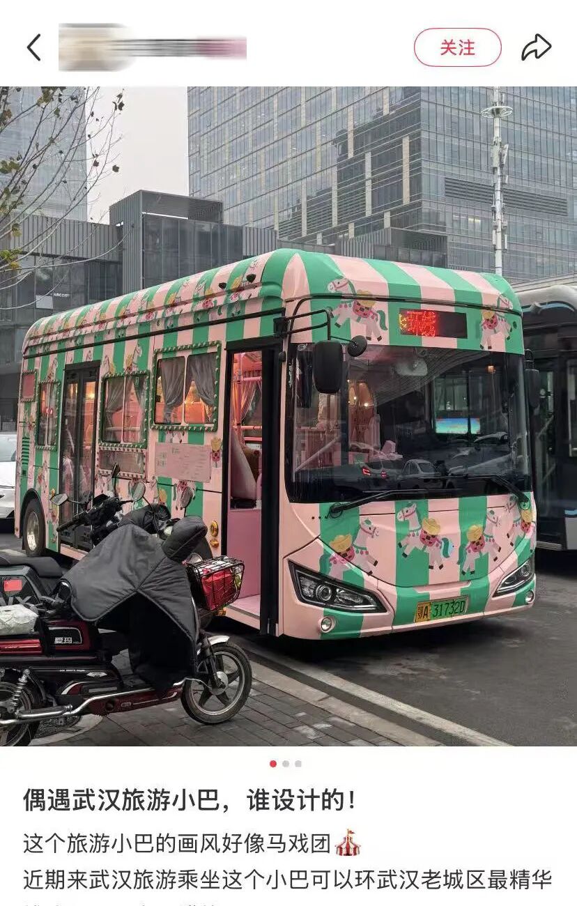 在武汉,最近刷到最多的,是两辆在街头来回穿梭的小巴士。一辆樱花粉、一辆复古红,远远看见就知道不是普通公交。