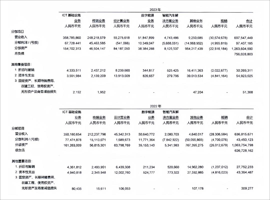 2022年到2023年是车BU处于技术研发与市场拓展的投入期,连续两年大额亏损:2022年亏损78.4亿元;2023年亏损收窄至56.7亿元;2024年全年营收261.6亿元,同比增长474%,首次实现年度盈利,利润约55.4亿元。盈利爆发主要得益于鸿蒙智行交付量激增,带动硬件需求放量,同时软件订阅模式开始贡献收入。