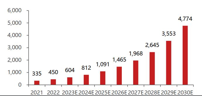 图:2021-2030 年全球 GPU 市场规模(亿美元),资料来源:景嘉微招股说明书, Verified Market Research