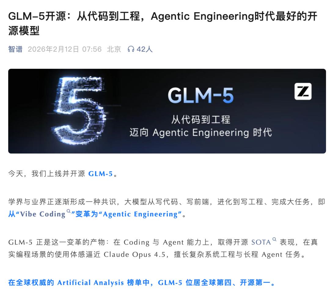 只不过,比起 GPT-5.3-Codex、Claude Opus 4.6,头一个把这件事做成开源基础设施的,是国产模型 GLM-5。