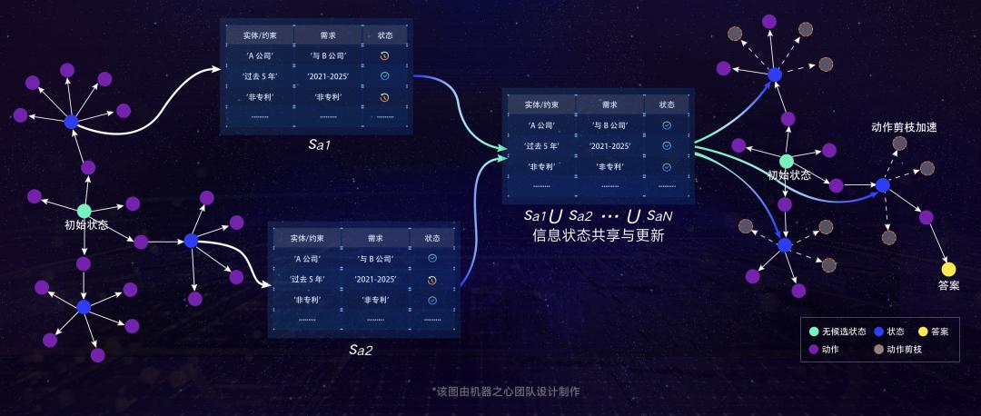 2、并行推理路径管理:将复杂问题分解为多分支推理路径,动态维护动作池