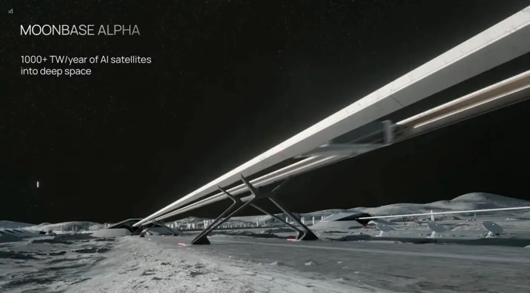 而在这场 all-hands 的最后,马斯克把这个逻辑推到了一个几乎只存在于科幻里的地方。如果地球已经装不下这些算力了,那下一步呢?答案是:月球。
