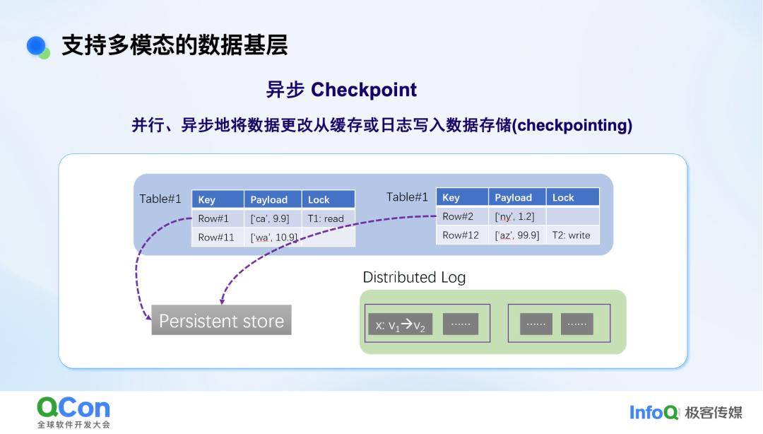 缓存和存储之间还会有互动,当数据做更改之后,缓存会用异步的方式把它存到存储上,实时操作只会更新到日志里,不会触发持久化存储。