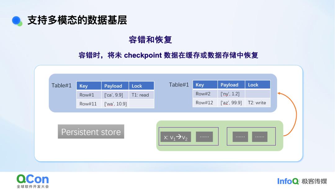 我们的数据基座里上面会有计算,下面会有存储。计算引擎是可以换的,什么样的引擎都可以,我们可以和很多开源组件原生兼容。中间我们会有一个数据基层,它抽象出来了在线数据库里最核心的一些功能,其中最重要的就是缓存。同时我们希望能用统一的缓存格式来弥合或消除不同数据模态之间的壁垒,使得数据在统一访问,或者在跨模态访问时可以高效。