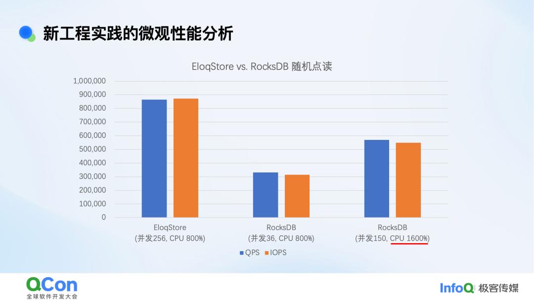 结果发现在同样的 CPU 下,我们的设计可以做到接近理论上线,比 RocksDB 高出很多。