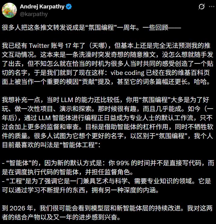 这种极致的工程能力,直接印证了 Andrej Karpathy 几天前的断言: