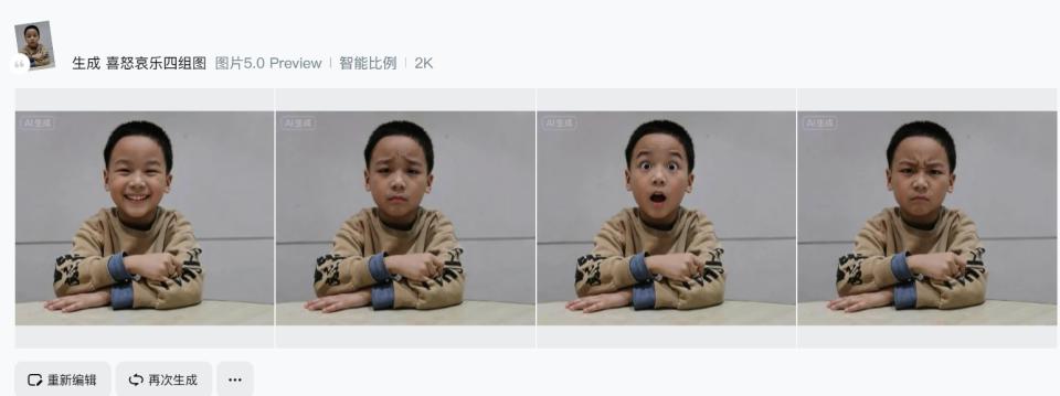 大模型还可以对细节编辑把控:能理解复杂矛盾需求。比如同一张图可以在保持其他元素不变的情况下,单独调整人物的表情,生成不同情绪状态的版本。
