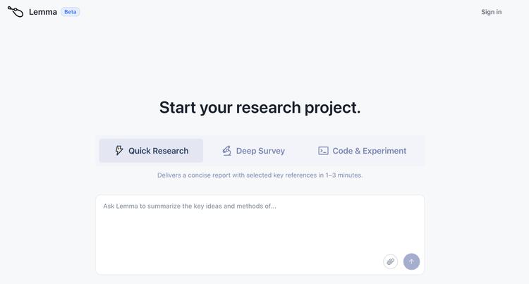 在FARS之前,Analemma已经上线了一个名为Lemma的产品(lemma.analemma.ai),提供快速文献调研、深度调研报告和代码实验三项功能。孙天祥告诉硅星人,Lemma是辅助驾驶,定位是生产力工具;FARS是自动驾驶,定位是基础设施。