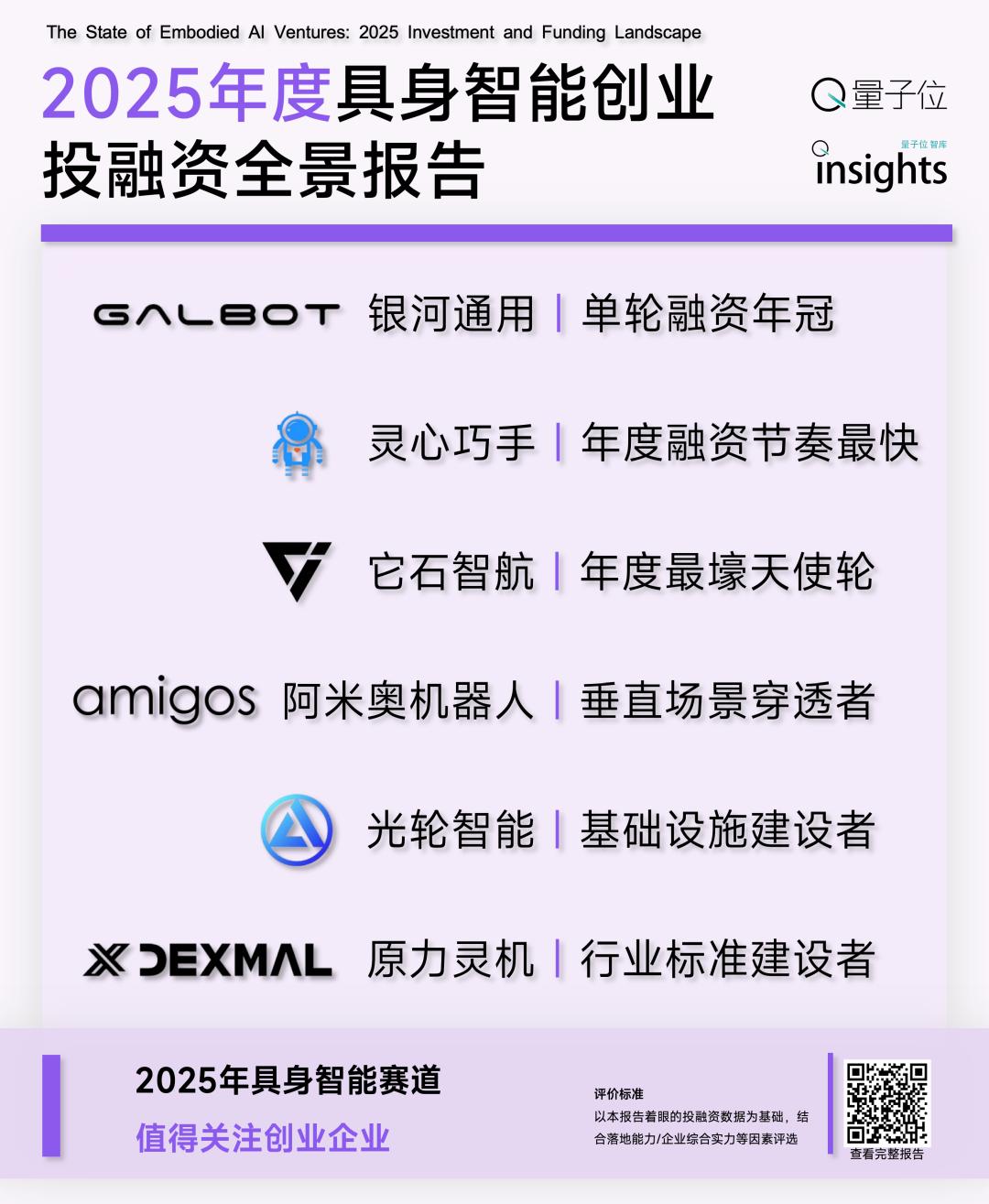 量子位智库梳理了具身智能赛道2025年值得关注的6家创业企业。