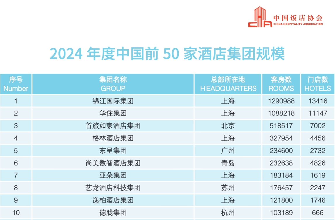 与此同时,连锁酒店数量的持续扩容,也为返乡住酒店及反向到小城度假旅行的消费者,提供了更丰富的选择。如今,千兆宽带、品牌床垫、智能客控逐渐成为部分经济型连锁酒店的标配。根据中国饭店协会发布的《2025中国酒店集团及品牌发展报告》(下称《报告》)显示,截至2024年12月31日,我国连锁酒店家数共9.33万家,连锁酒店客房总规模近707万间,客房同比增长31.61万间,增幅为4.68%。在报告公布的2024年度中国前50家酒店集团规模中,首次参评的艺龙酒店科技,直接闯入规模TOP10阵营、位居第八位。