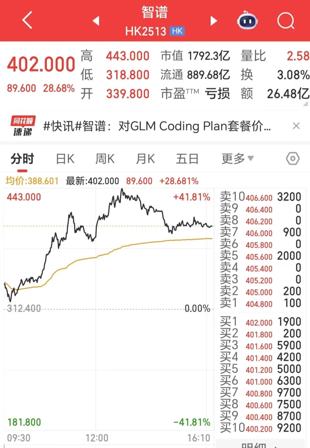 “大模型第一股”智谱宣布涨价,股价一度涨超41%