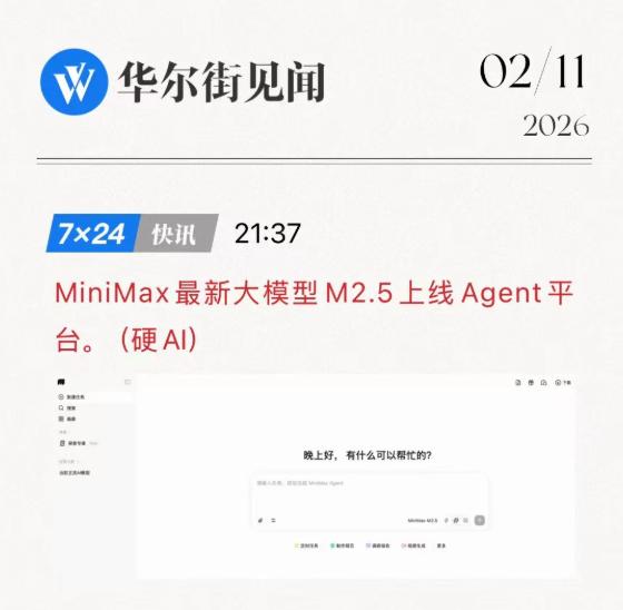 MiniMax 2月11日最新大模型M2.5上线Agent平台。