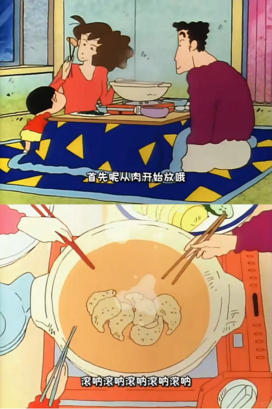 火锅很香,但我们往往更习惯和人共享的氛围。(图/《蜡笔小新》)