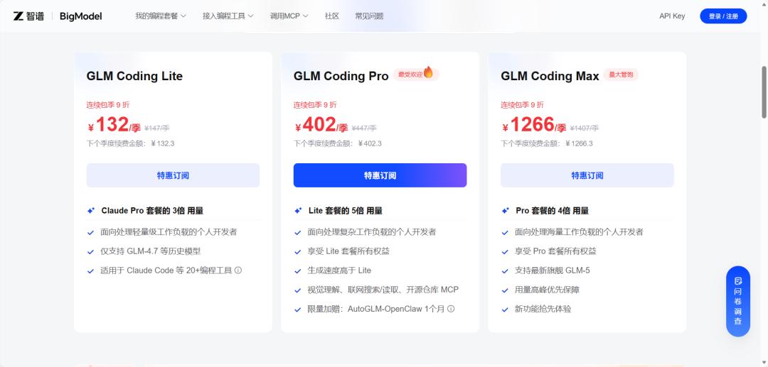 更为关键的是,官方此前发布公告称GLM-5在商用API层面仅对MAX套餐用户开放,待到模型资源更迭完成后Pro套餐用户才可使用GLM-5,至于Lite套餐用户则无明确说明。