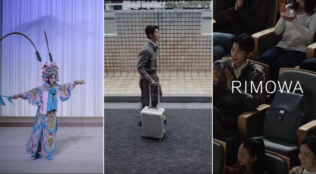 比如RIMOWA的「心驰万里风,天马当行空」大片,找了一个特别绝的切口——京剧里的「趟马」(戏曲艺术里独特的表演技巧,以形体、手势与马鞭道具,在舞台上构建出策马疾驰的生动场景),一句没提马,处处都是马。