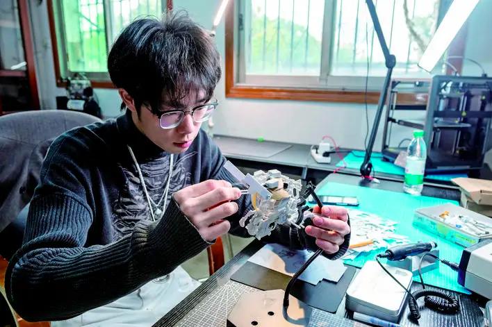 高星宇在宿舍用“胶板”手搓精良机甲模型图源|湖南日报
