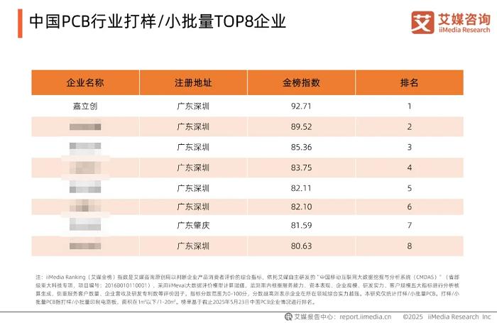 嘉立创位于中国PCB行业打样/小批量TOP8企业图源 | 艾媒咨询