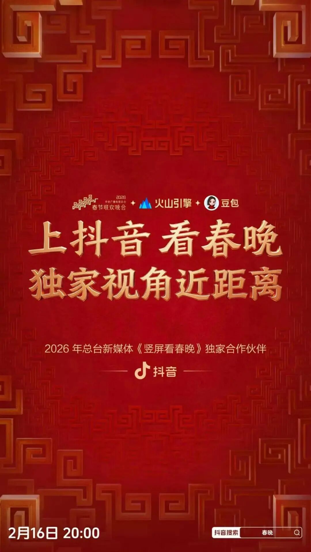 抖音拿下2026年总台新媒体《竖屏看春晚》独家合作,这是继去年后的再次牵手。