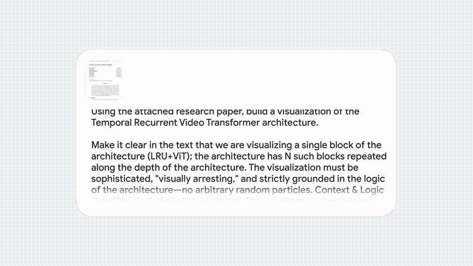 官方演示中,Gemini 3 Deep Think可以根据论文,为「时空循环视频Transformer」架构创建一个的视化方案。