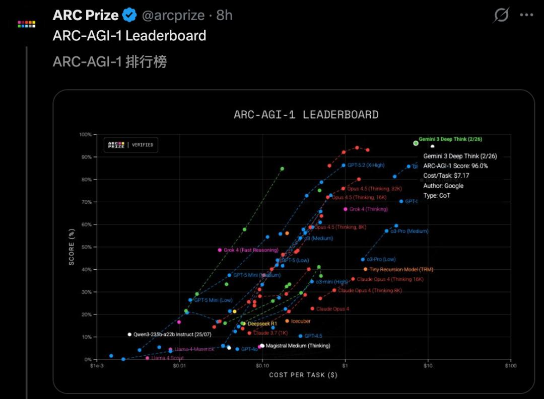 另外,Gemini 3 Deep Think在ARC-AGI-1上,直接顶到头了。