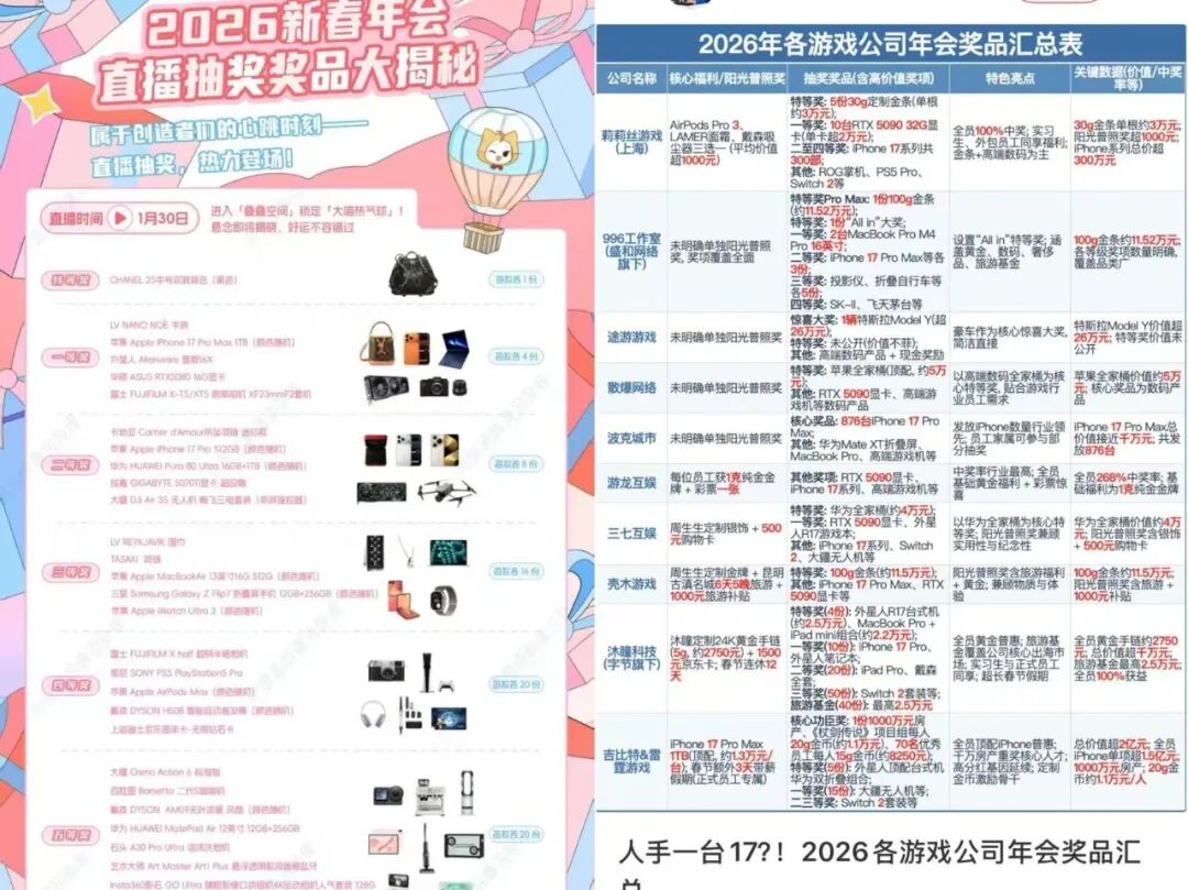 部分游戏年会奖品整理,图源:小红书@职场河南