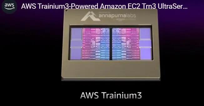 近年来,亚马逊科技一直致力于自主研发人工智能(AI)训练芯片,以图摆脱对于英伟达的过度依赖。2025年12月3日,AWS正式推出了其最新一代产品——Trainium 3。据悉,Trainium 3是基于其尖端3纳米制程所打造,这款第三代芯片及其配套系统在训练和高负载推理场景下的速度较上一代产品提升超过4倍,内存容量也增至4倍。包括Anthropic、日本大语言模型公司Karakuri、SplashMusic以及Decart在内的多家客户已率先采用第三代Trainium芯片及系统,并显著降低了推理成本。