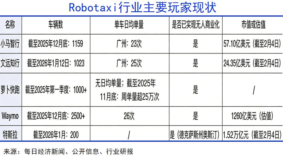 Robotaxi已经走到了商业化临近的拐点。2月2日,Alphabet旗下Waymo完成160亿美元的业界最大单笔融资纪录,投后估值跃升至1260亿美元,已经超过比亚迪的总市值。
