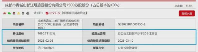 但是,中青旅对青都旅游10%股权的首次挂牌(2025年12月30日至2026年1月27日)却无人问津,挂牌底价8534.12万元最终流拍。