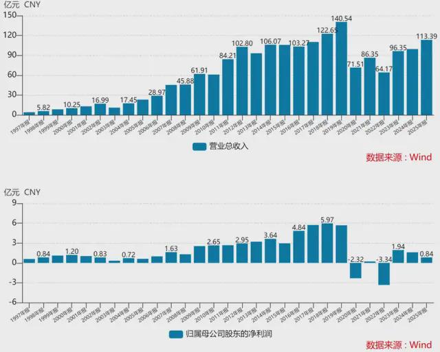 上市以后,中青旅的业绩呈现震荡上行的态势,尤其是归母净利润,还曾亏损过两年。