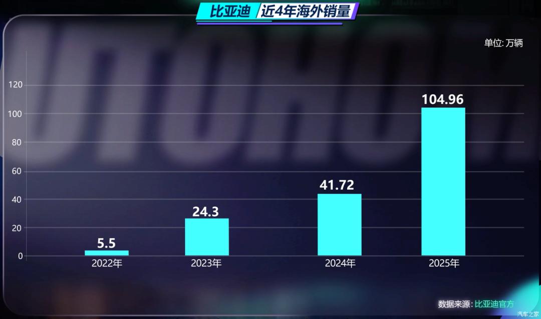 从海外销量几乎可以忽略不计,到一年卖出上百万辆,比亚迪也就用了4年时间。