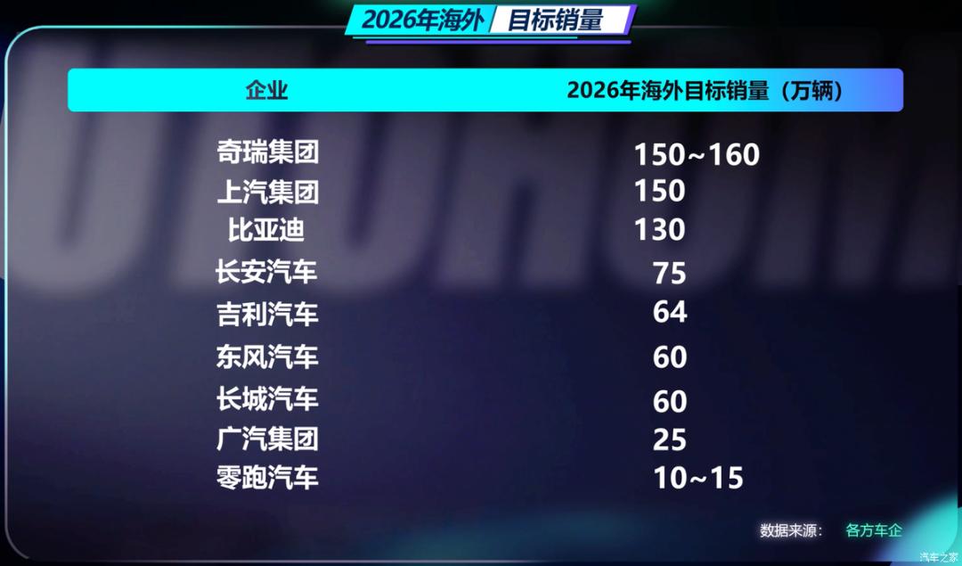 还没来及为2025年庆祝,就已经有9家车企发布了2026年的海外销量目标: