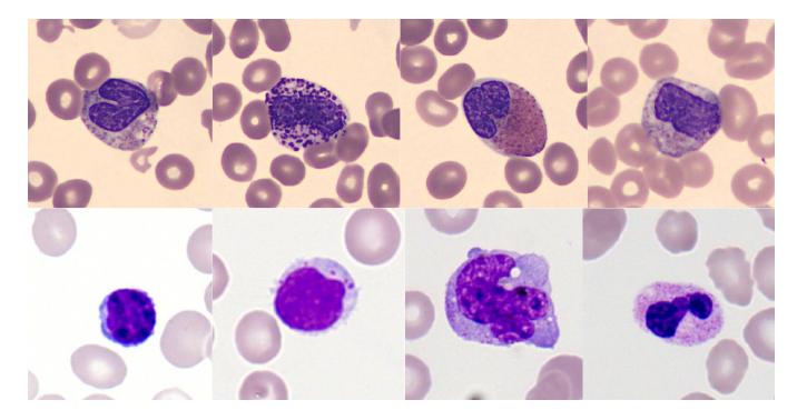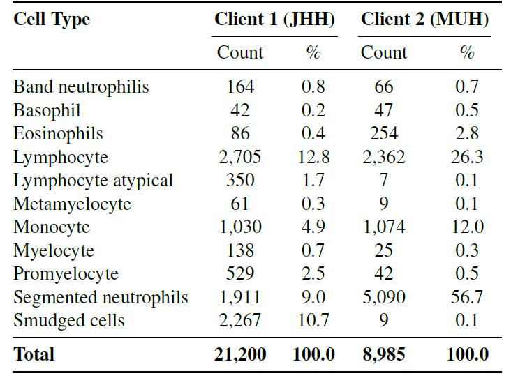 具体而言,研究使用了来自两个中心的独立数据集,这两个数据集包含 11 种共同细胞类型(如中性粒细胞、嗜酸性粒细胞、嗜碱性粒细胞、早幼粒细胞等),保证分类目标一致,同时保留了染色和成像的差异,用于测试联邦学习在真实异质环境下的泛化能力。