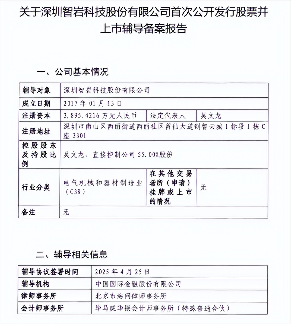 2025年5月,智岩科技在深圳证监局完成辅导备案,正式启动上市进程。