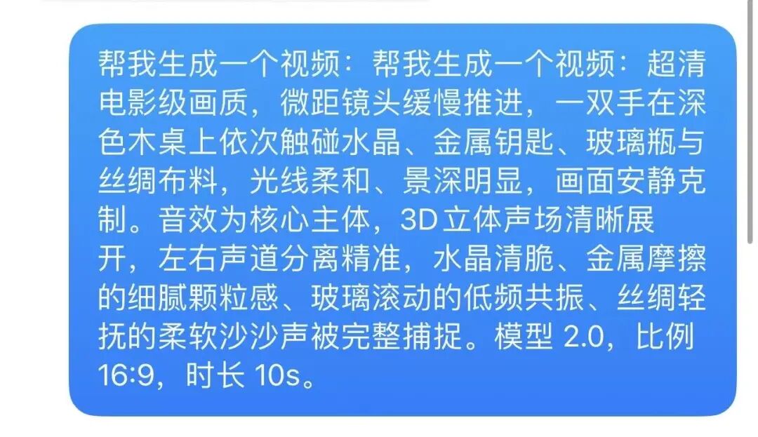 咱们再来试一个ASMR的场景,这回我们让AI在同一个视频中演绎出不同物体的触发音,看看会是啥效果~