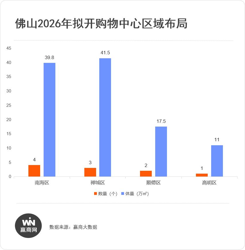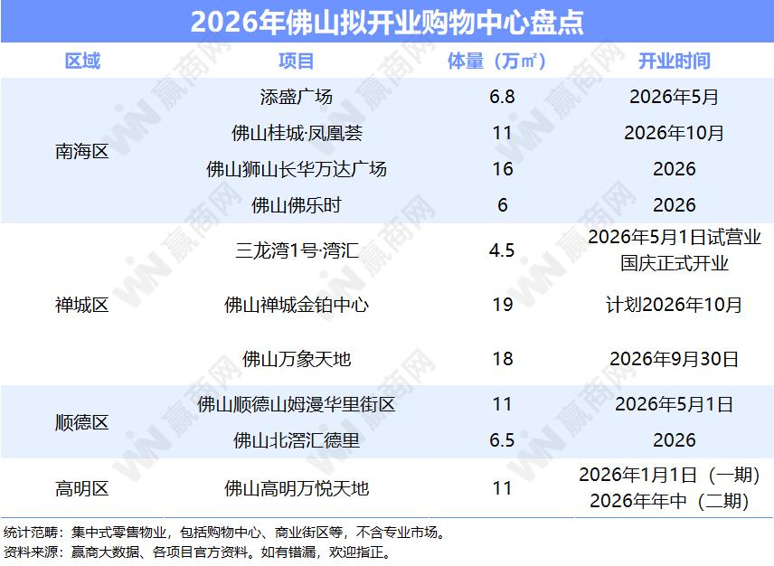 进入2026年,据赢商大数据统计,佛山将有10个购物中心筹备开业,新增商业体量111.3万㎡。