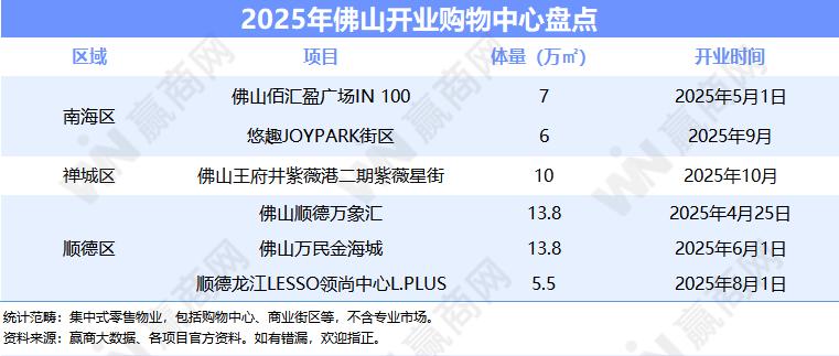刚过去的2025年,据赢商大数据统计,佛山开出了6个购物中心,新增56.1万㎡商业体量。